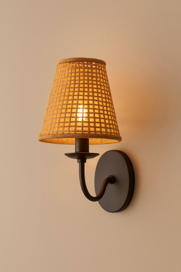 • This rattan wall sconce blends natural charm with modern design, creating a cozy and stylish atmosphere.