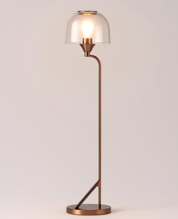 1: This floor lamp features a high-quality transparent glass shade with a clear texture, delivering soft and even lighting that creates a warm ambiance.