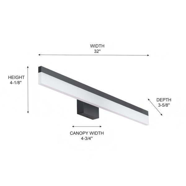 Modern 32″ LED Wall Sconce Light, Matte Black with Acrylic Shade, Contemporary Vanity Lighting