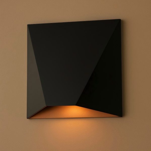 • This geometric wall sconce features a sleek matte black finish and minimalist square design, bringing a touch of modern elegance to any interior.