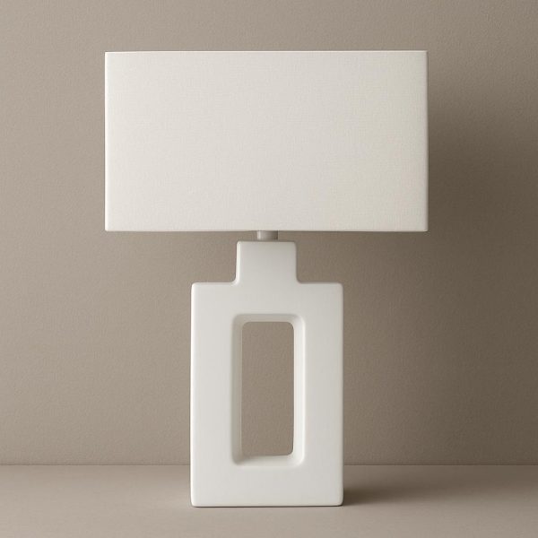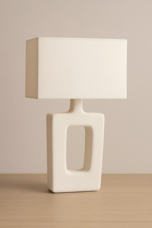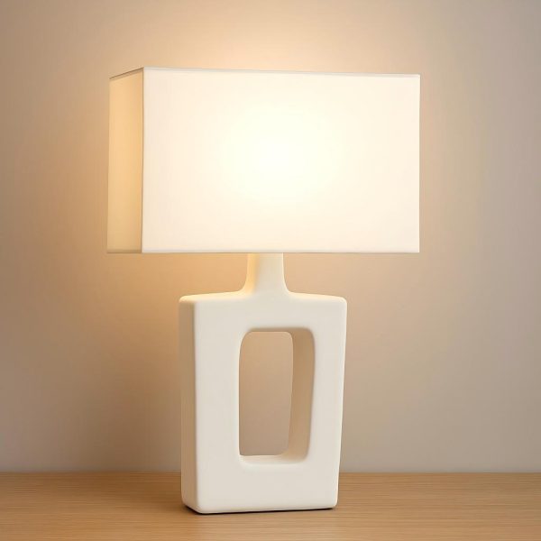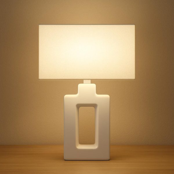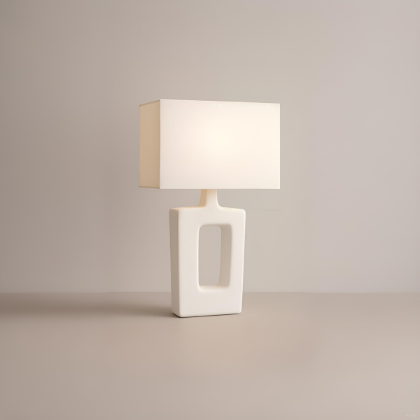 • This modern ceramic table lamp adds a clean and minimalist touch to your home décor.